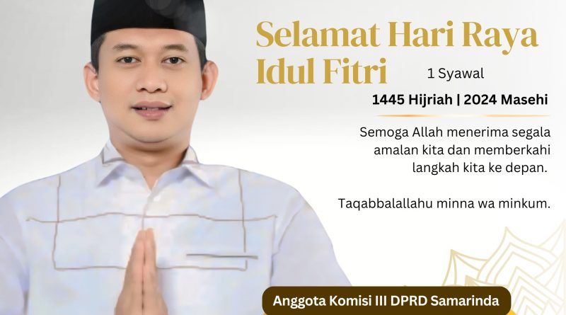 SAMARINDA – Anggota DPRD Samarinda dari Partai Demokrat Eko Elyasmoko menyampaikan ucapan Selamat Hari Raya Idul Fitri. Dan tak lupa menyampaikan permohonan maaf lahir dan bathin.