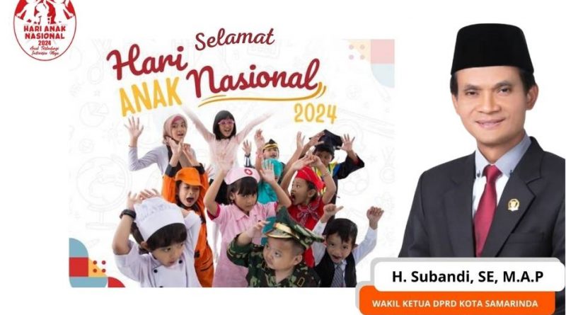 SAMARINDA – Wakil Ketua DPRD Samarinda Subandi mengucapkan Selamat Hari Anak Nasional. Hari Anak merupakan hari untuk mempersiapkan generasi penerus bangsa. Semoga setiap anak Indonesia dapat menikmati kesempatan dan kebahagiaan yang sama.